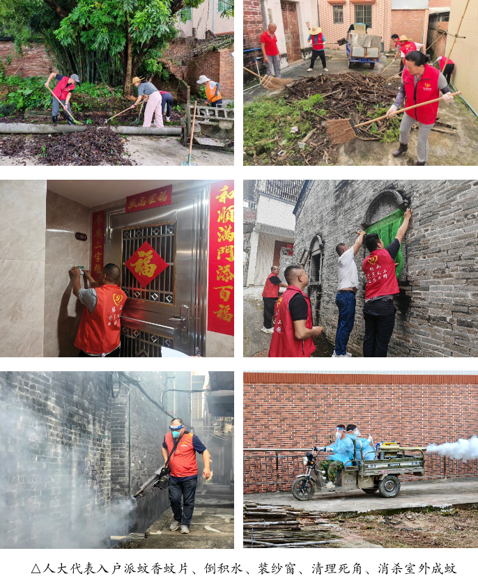 国庆节前,雅瑶镇人大代表第一时间响应号召,投身一线,主动参与“1130行动”,主动亮身份、当先锋,不仅带头入户派蚊片、点蚊香、倒积水、装纱窗,落实居家防蚊灭蚊措施,还走街串巷清理卫生死角,重点灭杀隐蔽场所滋生蚊虫,切实筑牢防控“第一道防线”。