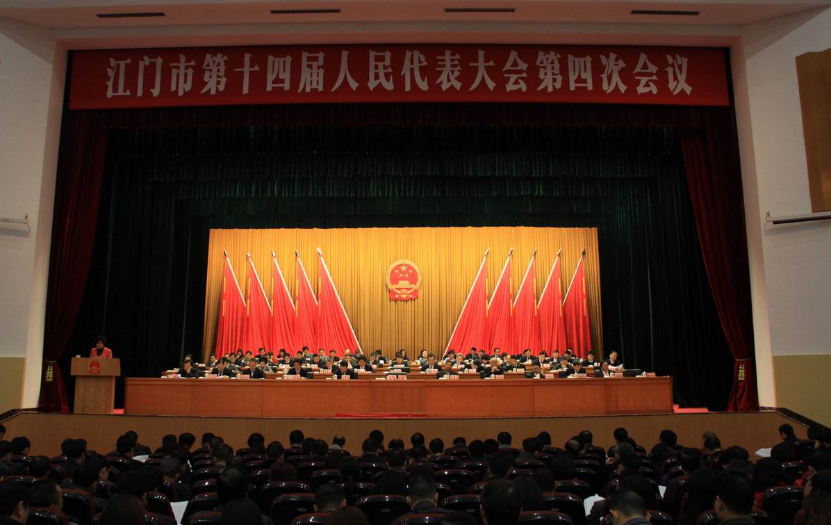 1月22日,江门市十四届人大四次会议开幕,来自各市区300多名人大代表出席会议。江门市委书记、市人大常委会主任刘海专程参加我市代表团的讨论,勉励鹤山传递正能量,凝心聚力,推动经济社会大发展。 会上,江门市市长庞国梅代表江门市人民政府向大会作工作报告。2013年江门全市生产总值突破2000亿元,比上年增长9.8%;固定资产投资1000亿元,增长17.7%。工作报告提出,2014年江门市将抓住改革这一主题和发展这一主线,坚持稳中求进总基调,坚持发展实体经济不动摇,继续以“种树、搭桥修路、抓大项目”为抓手引领全局工作开展,努力推动幸福侨乡建设再上新台阶。会议还听取了江门市人大常委会、江门市人民法院、江门市人民检察院的工作报告。 下午,我市代表团对政府、计划、预算报告进行讨论,江门市委书记、市人大常委会主任刘海前来听取代表的意见和建议。刘海指出,今年江门市政府工作报告突出“实在”和“实用”两大原则,强调以“种树、搭桥修路、抓大项目”为抓手推动全局工作开展,希望鹤山市按照江门市委、市政府的要求,紧抓实体经济,做好城市规划建设、交通基础设施建设,关心群众关注的问题。刘海勉励我市干部群众振奋精神,团结一致,依法行政,确保社会和谐稳定。 “鹤山未来的工作要继续全面深入改革,一张蓝图抓到底。”江门市人大代表、鹤山市委书记伍培进在发言中指出,全力营造一个和谐稳定的环境是发展的前提,要坚持改革,发展实体经济;转变政府职能,狠抓民生实事,落实养老、医疗、教育等老百姓关心的民生大事;真抓实干,把民生大事一件件落实,让老百姓分享到发展的成果。 江门市人大代表、鹤山市代市长谢锦波亦强调,实体经济的发展要狠抓不放松,发展是为了老百姓,要让老百姓看到社会的发展,感受到生活的改善。