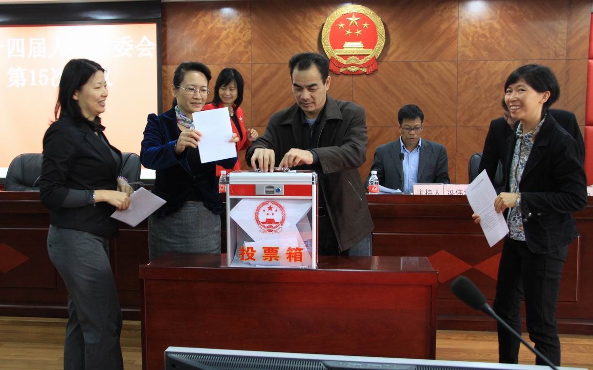 12月10日上午,市十四届人大常委会召开第15次会议。会议进行了相关人事任免,任命杨海泉为鹤山市人民政府副市长。 市人大常委会常务副主任冯伟华向副市长杨海泉颁发任命书 市人大常委会常务副主任冯伟华主持会议,人大常委会副主任方长江、张子峰、陈绍忠、林慧梅及委员出席了会议。市长伍宇雄,副市长陈常岷,市法院院长林跃新,市委组织部、市府办、经信局、农业局、卫生局、食品药品监管局、质监局、工商局、资产办的负责人,市人大机关副科级以上干部列席了会议。 会议还通过了关于增选人民陪审员的决定,审议通过了市政府关于发行债券有关事项的议案,听取和审议了市政府关于实施《食品安全法》情况的报告,听取和通过了代表资格审查委员会关于补选代表资格的审查报告,补选了江门市十四届人大代表一名。