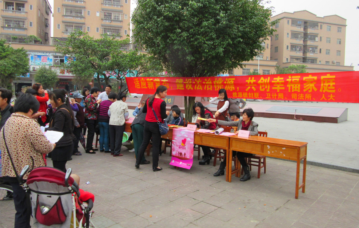 为弘扬法治精神,加大普法力度,推进平安建设,3月25日,桃源镇人大、司法所、卫生和人口计划生育局、妇联等部门联合在桃源文化广场开展法律宣传咨询活动。