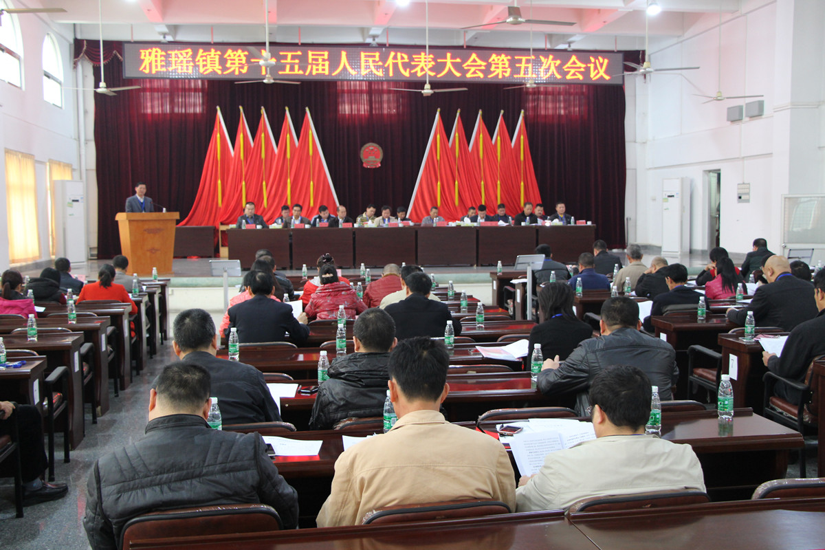 3月11日,雅瑶镇召开十五届人大五次会议。全镇人大代表、列席人员共100多人参加会议。 会议听取并审议了《雅瑶镇政府工作报告》、《雅瑶镇2014年财政预算执行情况和2015年财政预算草案报告》、《雅瑶镇人大工作报告》以及雅瑶镇中心区概念规划及城市设计方案、雅瑶镇汽贸街概念规划方案。大会通过法定程序,依法补选胡弦为镇人大副主席、谭敏清为副镇长。 会议强调,全镇要以党的十八大、中央经济工作会议和市委十一届六次全会精神为指导,围绕市委“六大核心任务”,主动适应新常态,依托桥头堡优势,紧抓江顺大桥开通的历史机遇,突出经济增长、转型升级、城乡一体、改善民生等重点工作,加快建设幸福、富裕、和谐雅瑶。 镇委书记、人大主席易汝明在讲话中指出,2015年是雅瑶镇实施“十二五”规划的关键一年,全镇要团结一致,攻坚克难,围绕经济发展、重点工程协调、民生投入等方面全方位落实镇政府各项工作。重点做好龙头企业招商、江门大道鹤山连接线施工协调、325国道过境线和佛开高速(南段)扩建征地拆迁等任务以及DN600供水总管铺设、村村通自来水工程、大城山森林公园建设等民生工程。同时,要求各人大代表要充分发挥联络员和监督员的作用,心系百姓,立足岗位,做好表率,不断提升自身素质,积极参政议政,建言献策,共同建设雅瑶镇的美好明天!