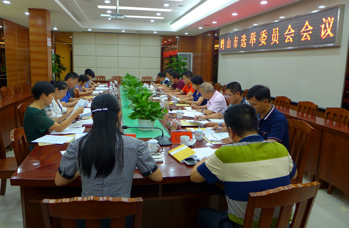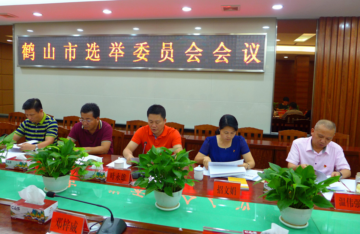 8月3日下午,鹤山市选举委员会召开第一次会议。会议由市选举委员会主任叶永雄主持,市选举委员会副主任招文娟、杨海泉及市选举委员会全体成员参加会议,市人大常委会副主任冯细就、温伟强列席会议。 会议宣读了市人大常委会关于市人大换届选举和设立鹤山市选举委员会的决定、市委批转市人大常委会党组关于做好2016年市镇两级人大换届选举工作的意见的通知;听取了市镇人大换届选举筹备工作情况汇报;审议通过了有关选民登记范围的界定意见、市镇两级人大换届选举工作实施方案、换届选举工作日程安排、市十五届人大代表名额分配、市十五届人大代表选举选区划分和代表名额分配、人大代表投票选举办法等事项;批准设立沙坪街道选举工作办公室、各选区选举工作领导小组。 就如何做好本次换届选举工作,叶永雄提出:一要认真学习,提升业务水平。选举委员会成员都要学法、懂法、知法、用法,依法开展选举各项工作。二要加强宣传教育培训。加大舆论宣传力度,引导群众积极参加选举活动,正确行使民主权利;抓换届选举骨干培训,使其掌握换届选举业务知识。三要严格落实换届选举工作要求。坚持党的领导、统筹兼顾,充分发扬民主,依法办事,把握好选区划分、选民登记、推荐和介绍代表候选人、选举等重点环节,严格按照规定的时间节点推进各项工作。四要密切配合,形成强大合力。选举委员会办公室负责处理换届选举的日常工作,要加强沟通和联系,及时互通信息,掌握情况,对换届选举中的重要问题要及时请示、报告。市直各有关单位要按照选举委员会的统一安排,加强沟通,积极配合,确保换届选举工作圆满完成。