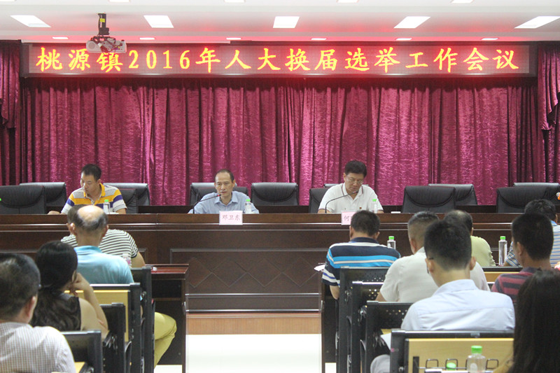 8月9日下午,桃源镇召开2016年人大换届选举工作会议,镇全体班子成员、驻村干部、村“两委”成员等约110人参加了会议。 会上,桃源镇人大主席候选人何建卫传达了市人大换届选举工作会议的有关精神,并对换届选举工作进行具体部署,明确了换届选举的总体要求、时间安排及各个阶段的工作。何建卫表示,换届选举工作涉及面广,法律性、政策性强,时间紧、任务重,各级要精心组织、统筹安排、确保换届选举各项工作依法有序进行。 桃源镇委书记邓卫东作了动员讲话。他强调,本次市、镇两级人大换届选举工作必须坚持三个原则:一是要坚持党的领导;二是要坚持发扬民主;三是要坚持严格依法办事。他要求,要强化领导、严明纪律,把“九个严禁”、“九个一律”的规定作为高压线,精心组织,落实责任,正风肃纪,把每一个阶段的工作抓紧、抓细、抓实,确保按时按程序完成换届选举工作任务。