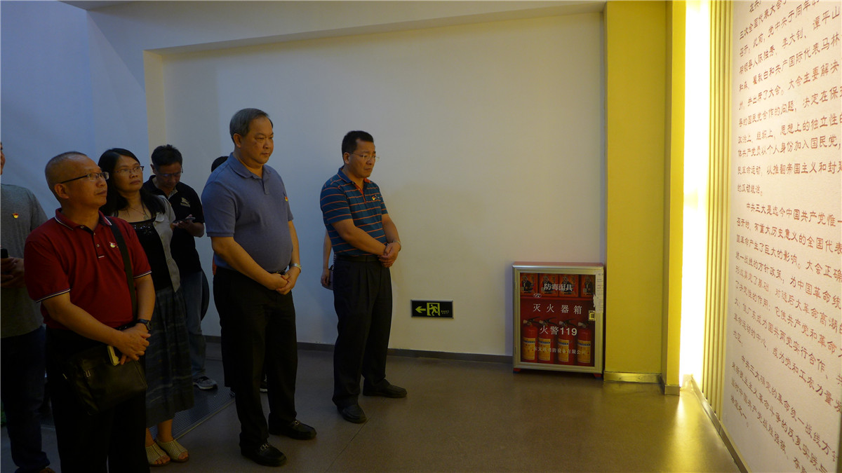 在中国共产党第三次全国代表大会历史陈列室内,全体党员驻足凝视,深入了解我党第三次全国代表大会召开的历史背景、参会人物和会议决策等内容,看到一幅幅图片、一段段文字、一件件物件,大家都认识到我党三大的召开,正确解决了建党初期党内在国共合作问题上的重大分歧,统一了全党的认识,确立国共合作方针。