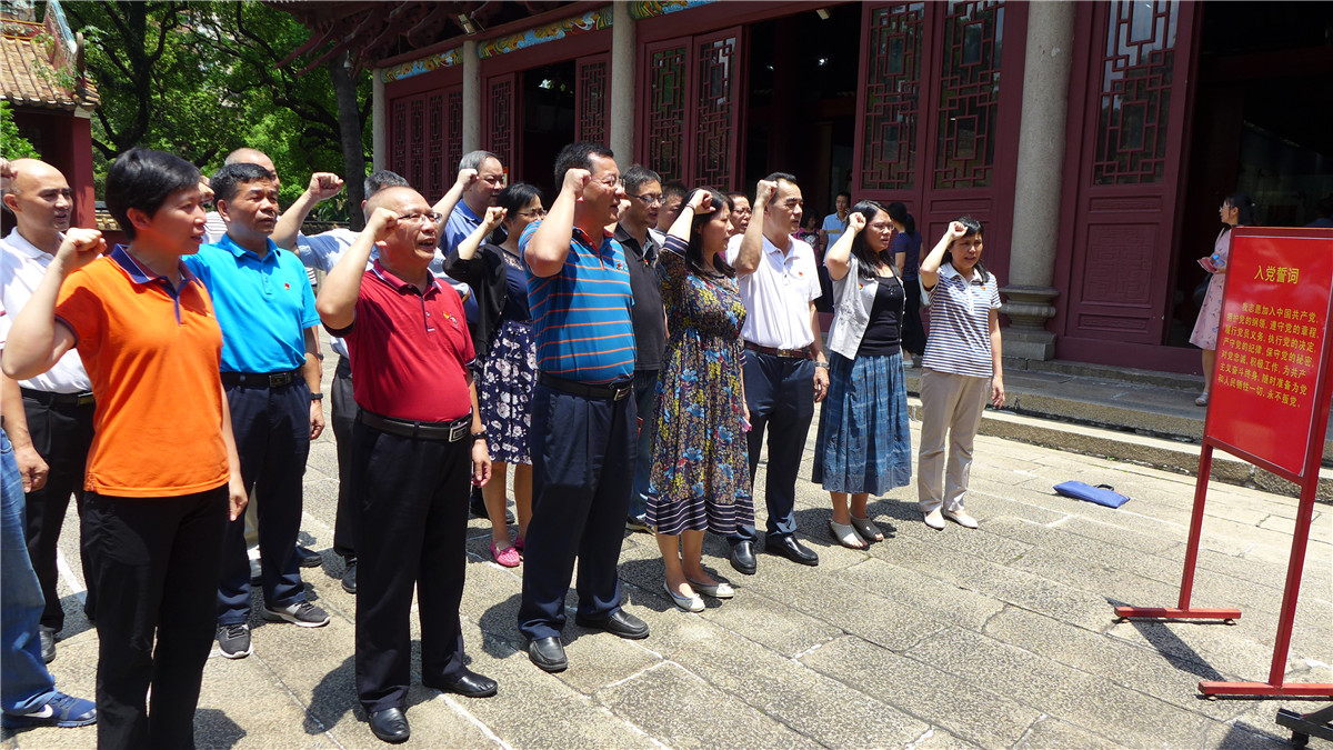 在广州农讲所内,全体党员了解到,“广州农民运动讲习所”一共举办了六期,共培养772名毕业生与25名旁听生,他们毕业后奔赴全国各地从事农民运动,成为农运的骨干力量。最后,全体党员面向党旗,高举右手,庄严地重温了入党誓词。
