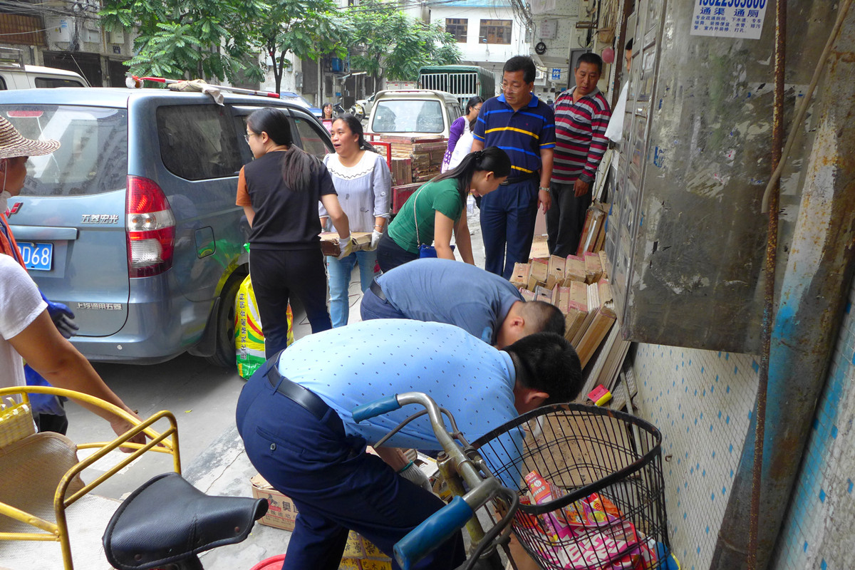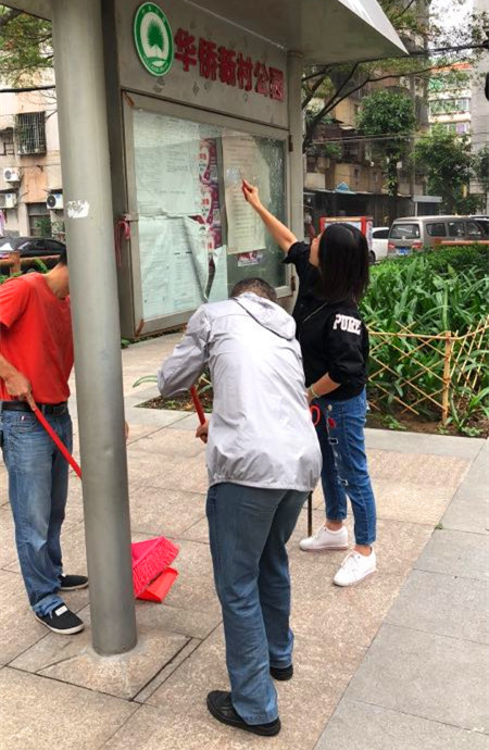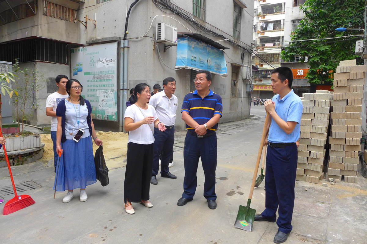 为推进社区落实创文迎检工作,11月15日,市人大常委会主任冯细就率市人大机关、市司法局、市粮食局、鹤山职校、沙坪街道办的负责人,深入沙坪街道兴业社区督导创文工作,并组织志愿服务队持续开展环境卫生整治和公共秩序劝导服务活动。 15日上午,冯细就一行实地察看了华山苑和兴业苑的环境秩序情况,要求进一步加大环境卫生整治力度,完善社区内分类垃圾箱等设施,及时修剪绿化树枯枝落叶,修整小区破损路面,加快兴业苑改造工程和“三线”整改、划线停车等工作进度,给居民营造舒适安全的居住环境。 就华山苑176―178号长期堆放杂物的问题,冯细就主任进行了重点督导,听取兴业社区负责人对有关情况的汇报,督促商铺业主认真落实“门前三包”责任制,劝导商户自觉将物件放回室内。对其他废弃的杂物,又组织挂点单位义工和社区干部进行了集中清理,使该处环境恢复洁净有序。 为帮助社区保持良好的环境秩序,11月15日至18日,市人大机关联合市司法局、市粮食局、鹤山职校组成志愿服务队,连续四天到兴业社区开展环境卫生秩序督导整治和巡查值守工作,全天对路面、墙面、花圃、市场等进行全面清理,对乱停乱放的车辆和占道经营乱摆卖的商户进行劝导,有效清除了卫生死角,让社区面貌焕然一新。