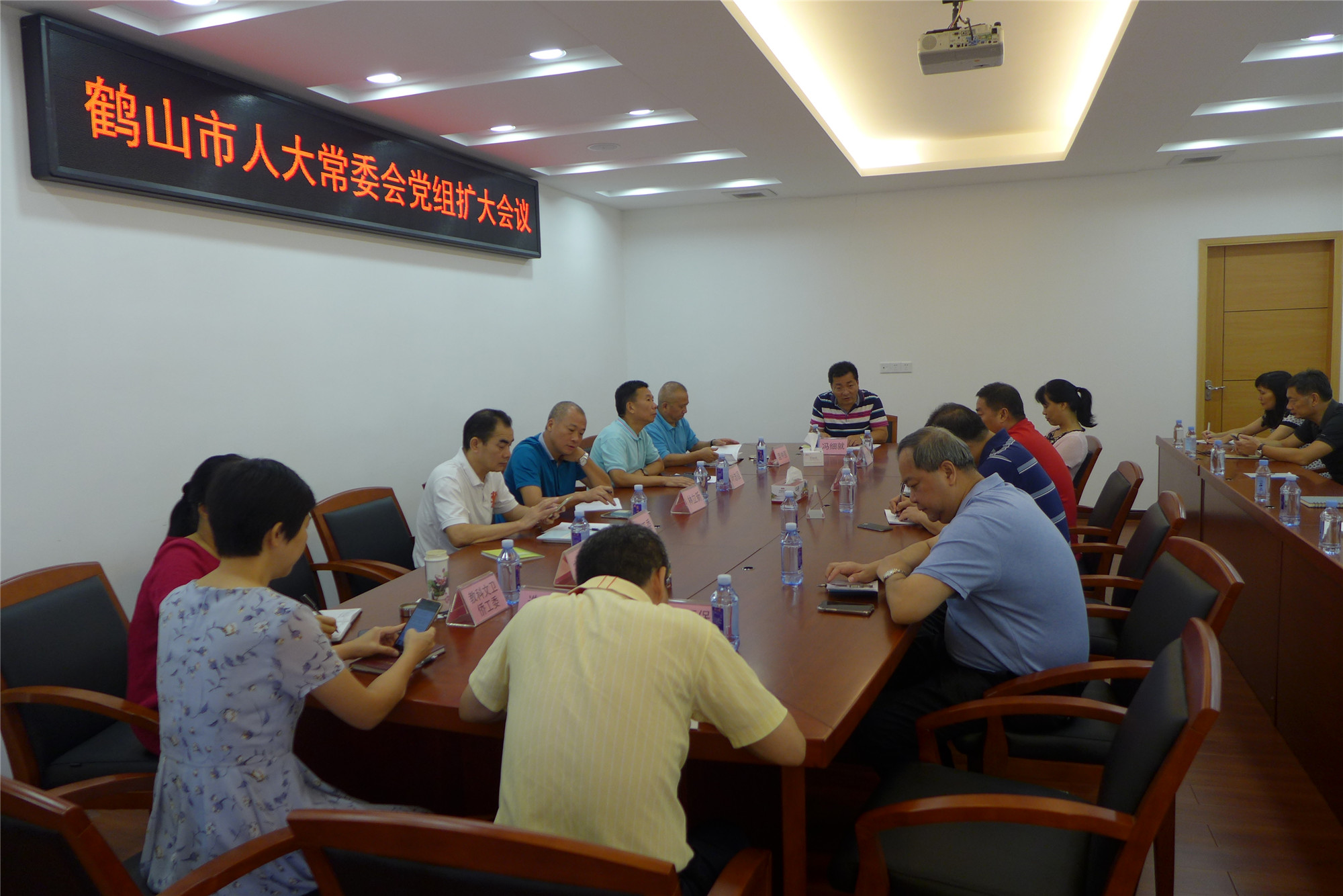 ,市人大常委会召开党组扩大会议,会议由市人大常委会主任、党组书记冯细就主持,市人大机关全体党员干部参加。会议首先由冯细就主任传达近期召开的市教育工作会议和市组织工作会议精神。然后再专题传达贯彻了江门林应武书记调研鹤山扫黑除恶工作时的讲话精神,冯细就主任最后强调,开展扫黑除恶专项斗争是一项关乎社会和谐稳定和人民安全幸福的重要工作,市人大机关各位干部要进一步提高政治站位,增强“四个意识”,切实履行好开展专项斗争的政治责任,各工委室要根据各自职能,深入开展扫黑除恶专项宣传,坚决打赢扫黑除恶这场人民战争。