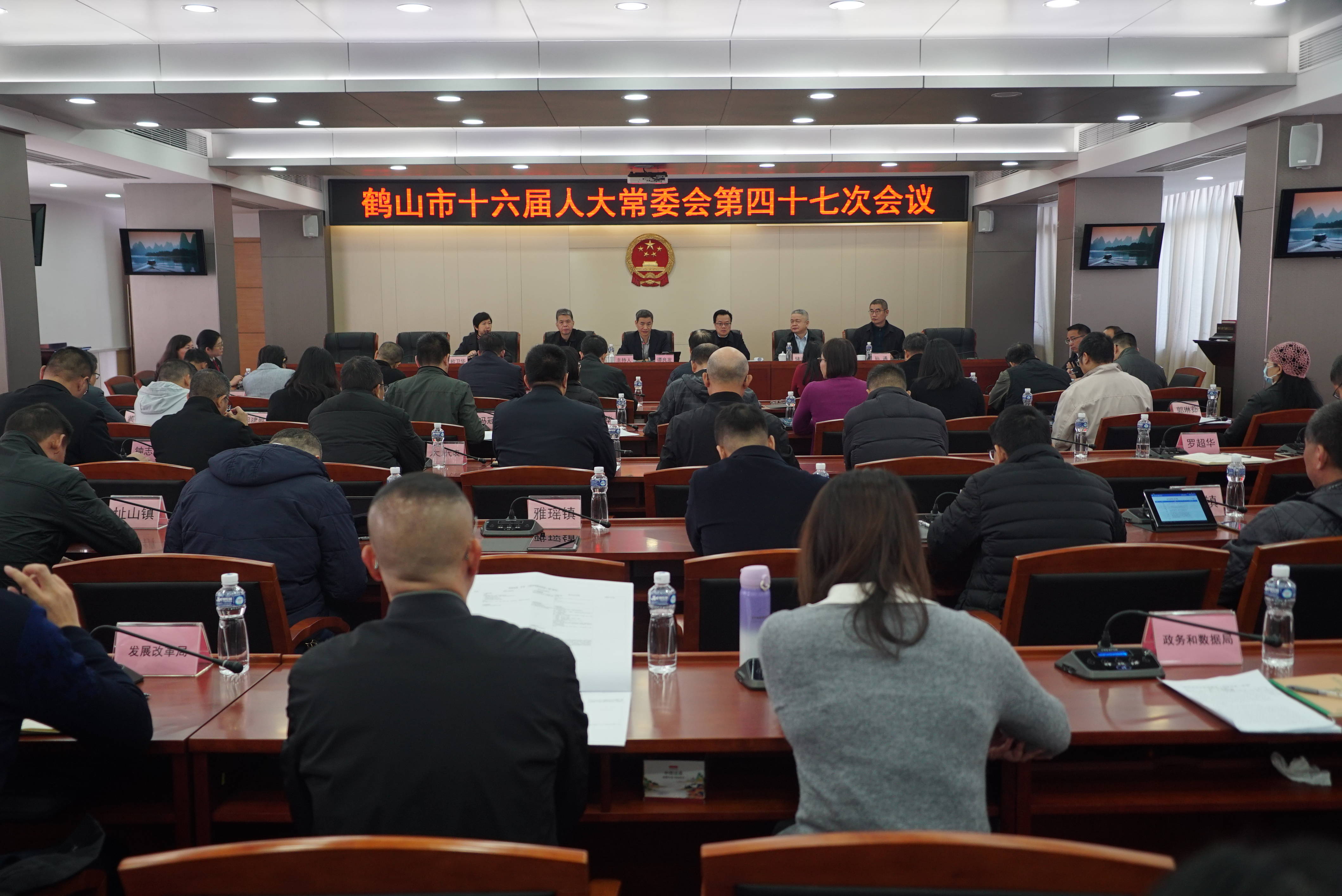 1月13日,鹤山市十六届人大常委会召开第四十七次会议,听取和审议有关报告,开展代表评议,进行人事任免。鹤山市人大常委会党组书记、主任谭良发主持会议。